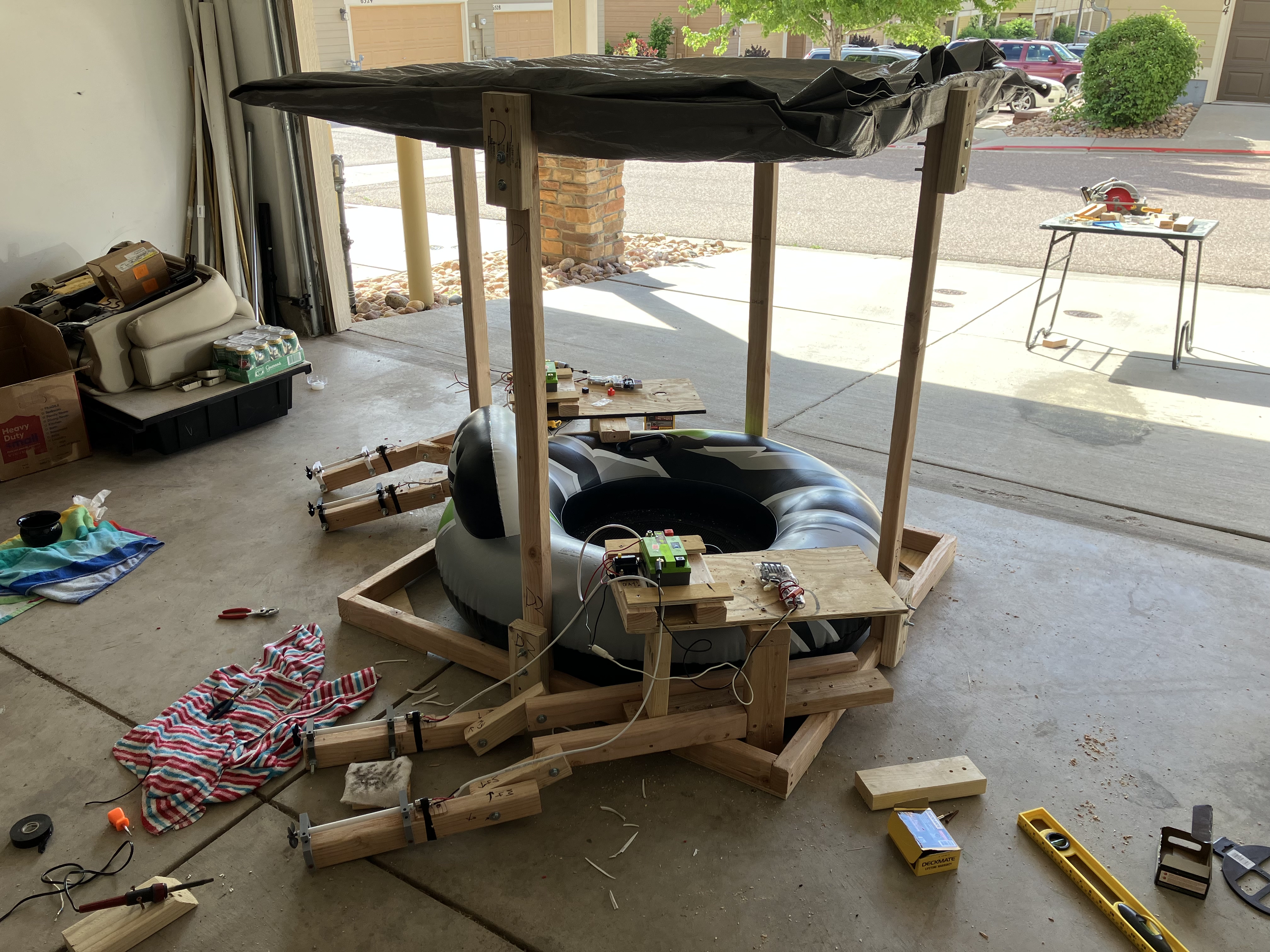 Motorized! Added motorcycle batteries and slot car motors to spin propellers.